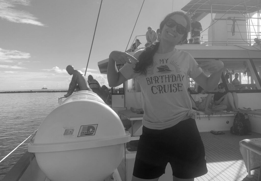 Esta excursión en catamarán a Isla La Graciosa fue mi auto regalo de cumpleaños y la compañera para esta aventura fue mi madre. Fuimos el mismo día y es por ello que íbamos con camisetas especiales. En la mía ponía: «My birthday cruise» y en la de mi madre ponía «Cruise Squad» jejejejeje