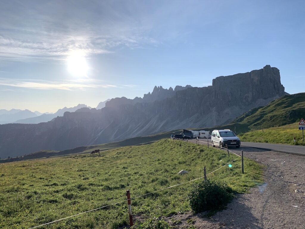 En el Passo Giau vimos alguna furgo que había pasado la noche ahí en los pequeños parkings de la zona.