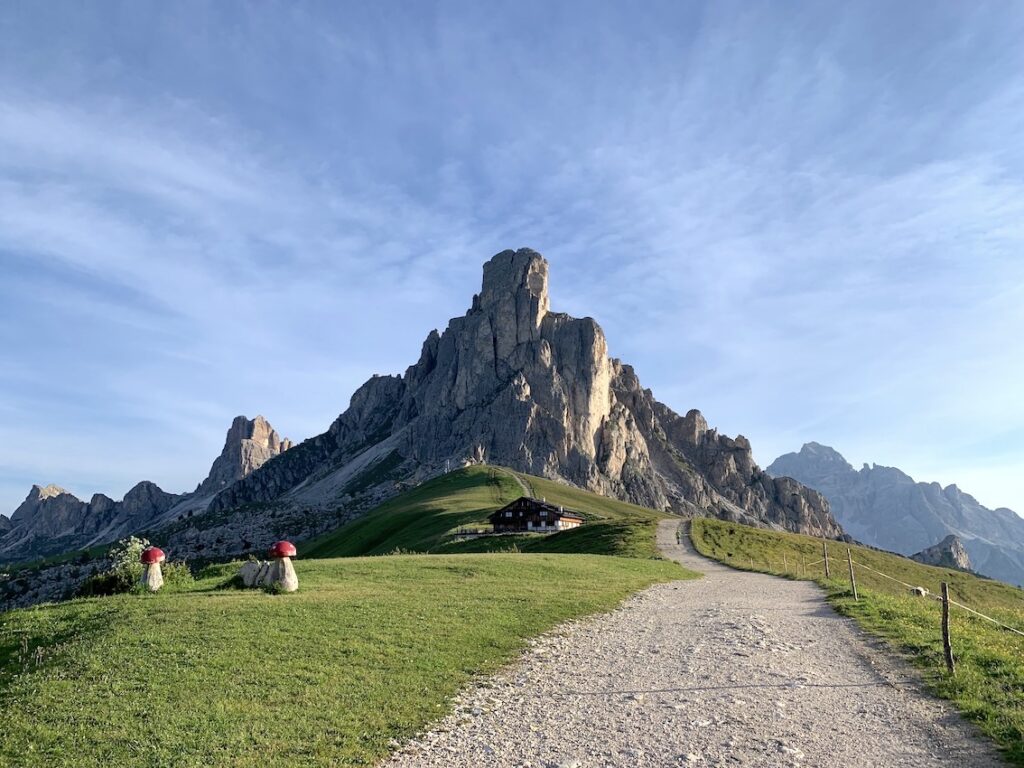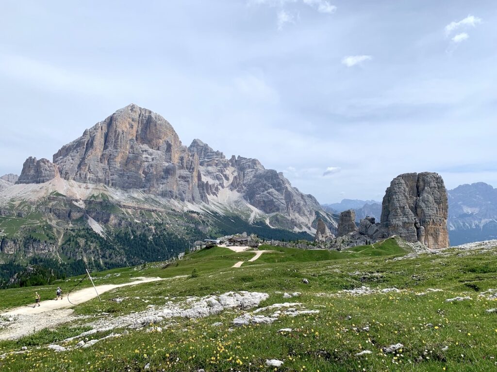 Es un bonito refugio donde paramos a tomar un refresco y disfrutar de las vistas que ofrece de Cinque Torri. Me he dado cuenta que no le hice foto al refugio en sí! Pero en esta imagen lo podéis ver a lo lejos, casi tocando las agujas de Cinque Torri.