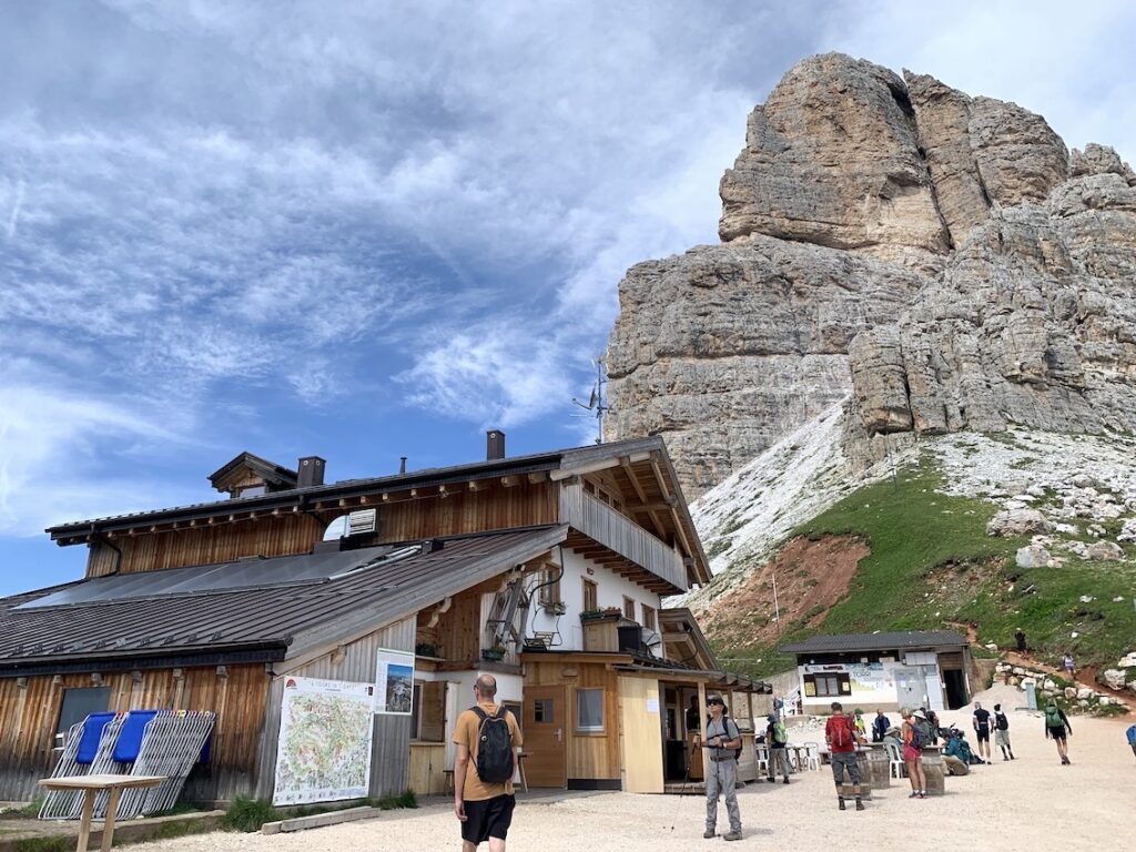 Un dato importante para quienes pueden caminar menos, es que a este refugio se puede llegar en coche. Pero no está abierto el acceso para todo el mundo, sino que vimos que accedían a través de taxis. Así que si no puedes caminar mucho por el motivo que sea, es un buen punto de partida para hacer sólo el Giro delle Torri.