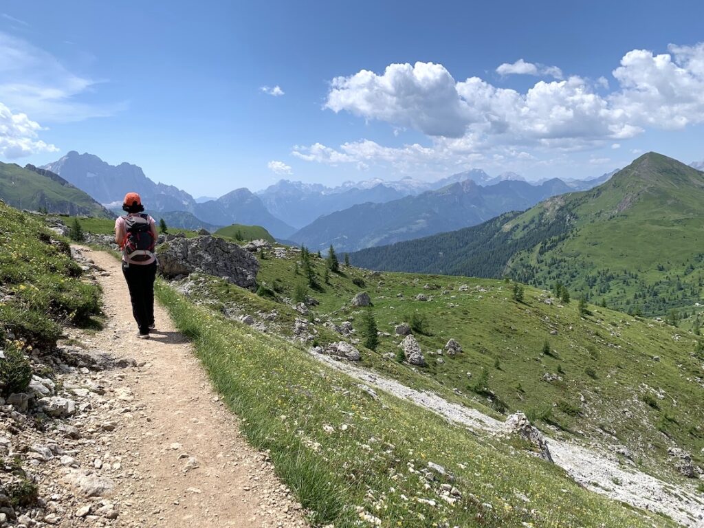 Desde aquí retomaremos el camino que se ve en la imagen yendo en dirección al Rifugio Averau siguiendo la ruta nº 440. Es una pista ancha pero de subida constante. Este tramo se nos hizo un poco pesado porque ya pegaba el sol y no hay sombras.