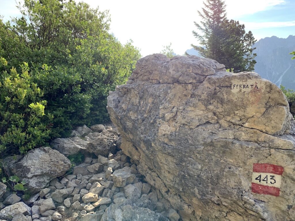 Cuando llegamos a este refugio tenemos varias alternativas para seguir la ruta. Nosotros rodearemos Cinque Torri siguiendo las indicaciones del Museo al Aire Libre de la Gran Guerra. La otra opción era seguir la ruta nº 425 (Giro delle Torri) que pasa más cerca de ellas.