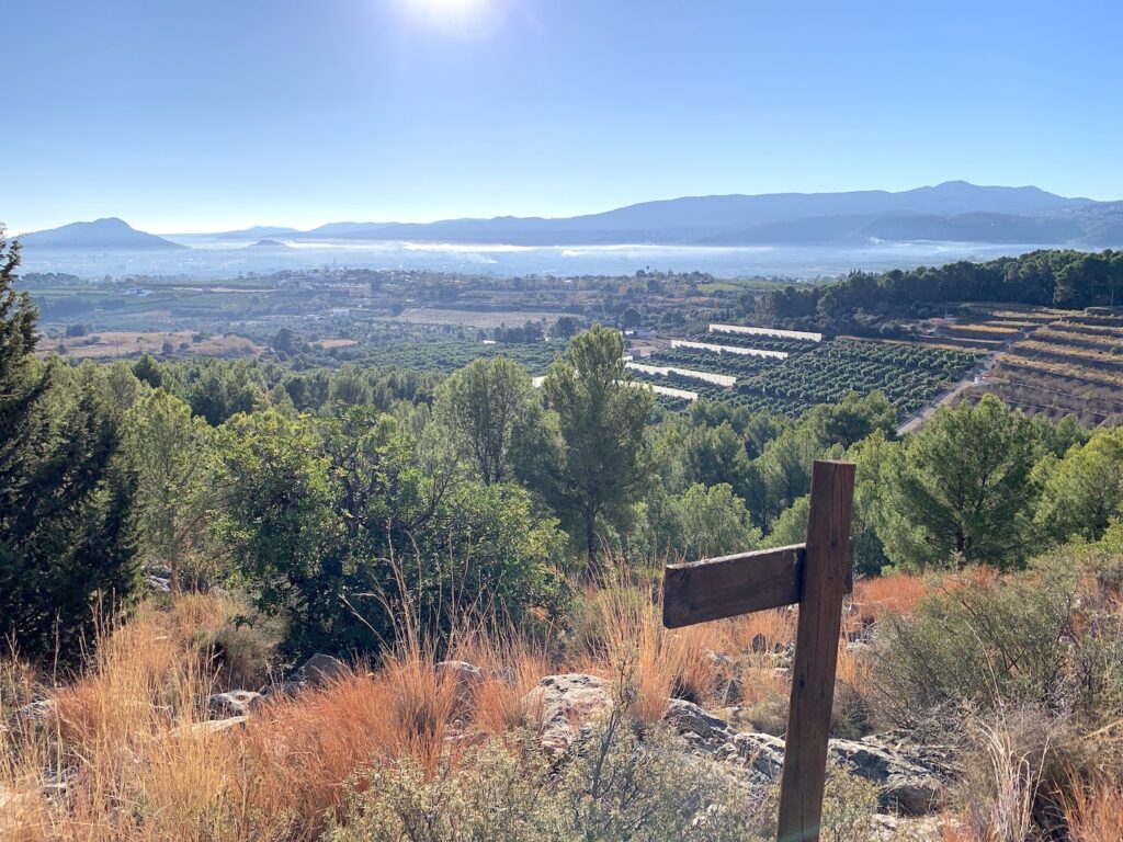 A los pocos metros, nos encontraremos con el mirador de la Segària. Las vistas son muy bonitas. Aquel día, parecía que hubiese como una niebla baja pero era el humo que la quema de rastrojos en los cultivos.