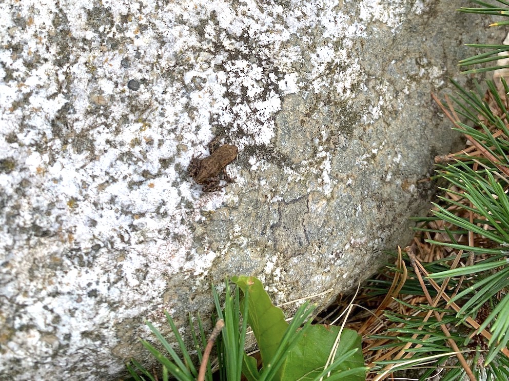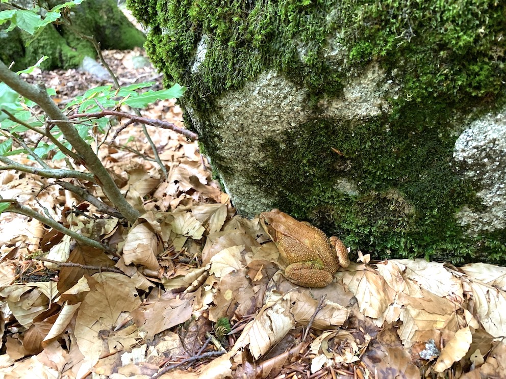 Aquí me paso una anécdota … que primero fue de peli de terror y luego cómica. Y es que me aleje un poquito para hacer un pipi detrás de unas rocas y de entre las hojas del suelo me salió este inmenso sapo! Me di un buen susto porque mira cómo era!