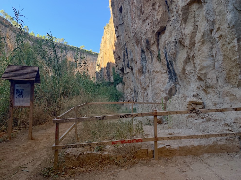 Es una ruta lineal donde la ida y vuelta transcurre por el mismo camino y acompaña al río Turia, quien ha formado una preciosa garganta o cañón, conocida como Hoces del Turia, que no te deja indiferente. En algunos tramos las paredes verticales que te hacen sentir pequeñito, tienen entre 80 y 160 metros de altura.