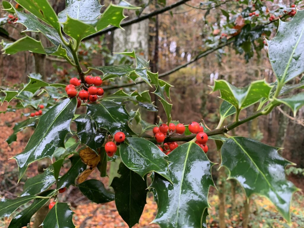 Pero no sólo encontrarás hayas. Otro protagonista es el acebo!!! De hecho, el nombre de esta Fageda viene del catalán «boix grèvol» que significa acebo. Muchos ya tenían su fruto, la drupa, de color rojo intenso precioso. Pero cuidado no los comas porque son tóxicos para las personas!!